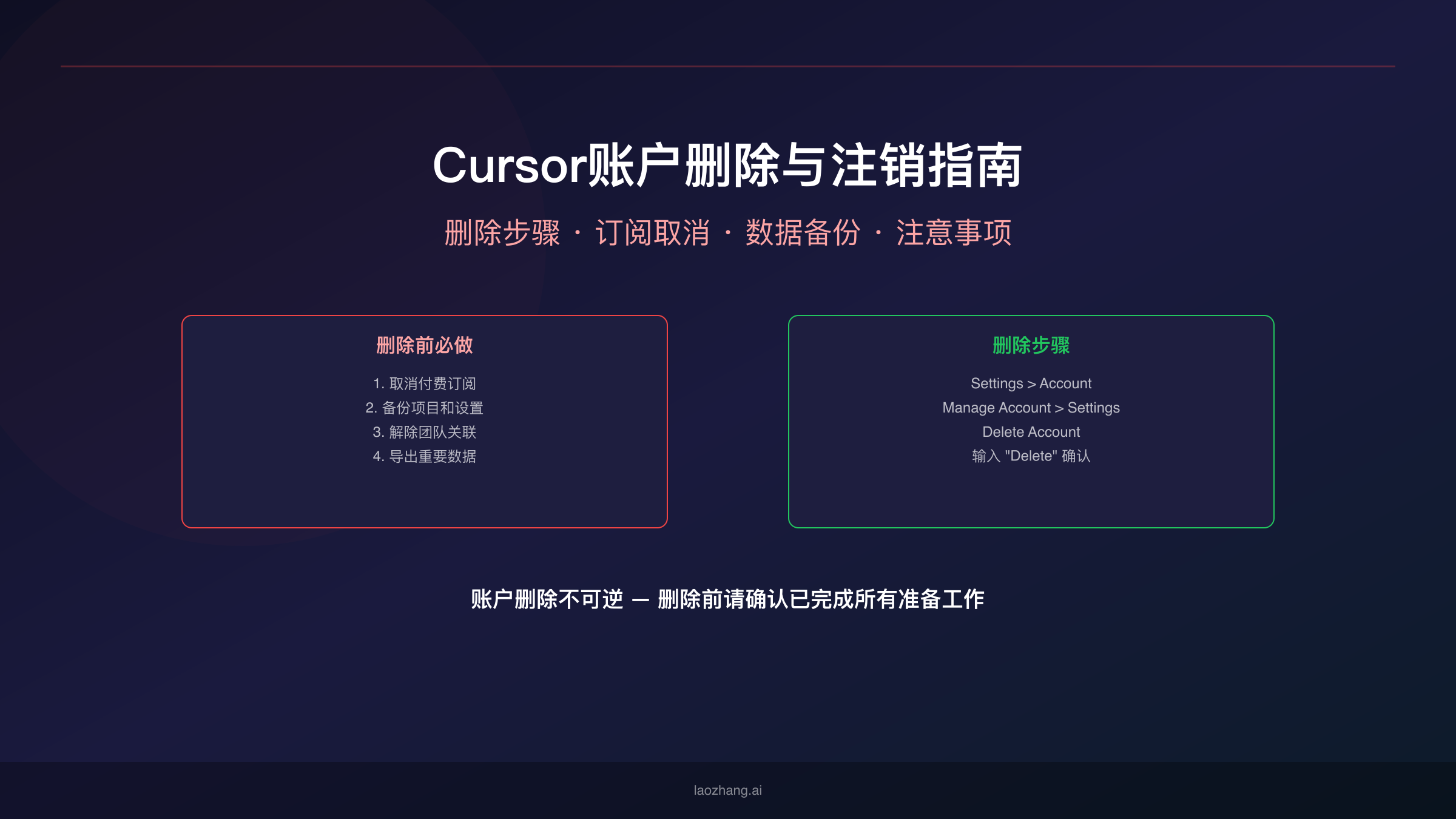 Cursor账户删除与注销完整指南:操作步骤、数据影响与替代方案