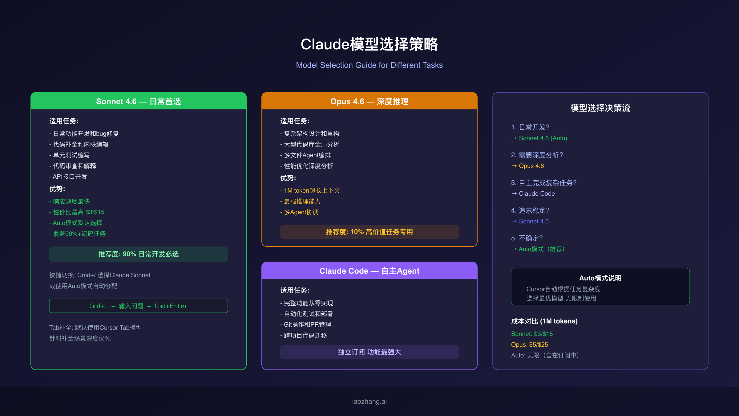 Cursor使用Claude完整指南:Sonnet 4.6、Opus 4.6配置与模型选择策略