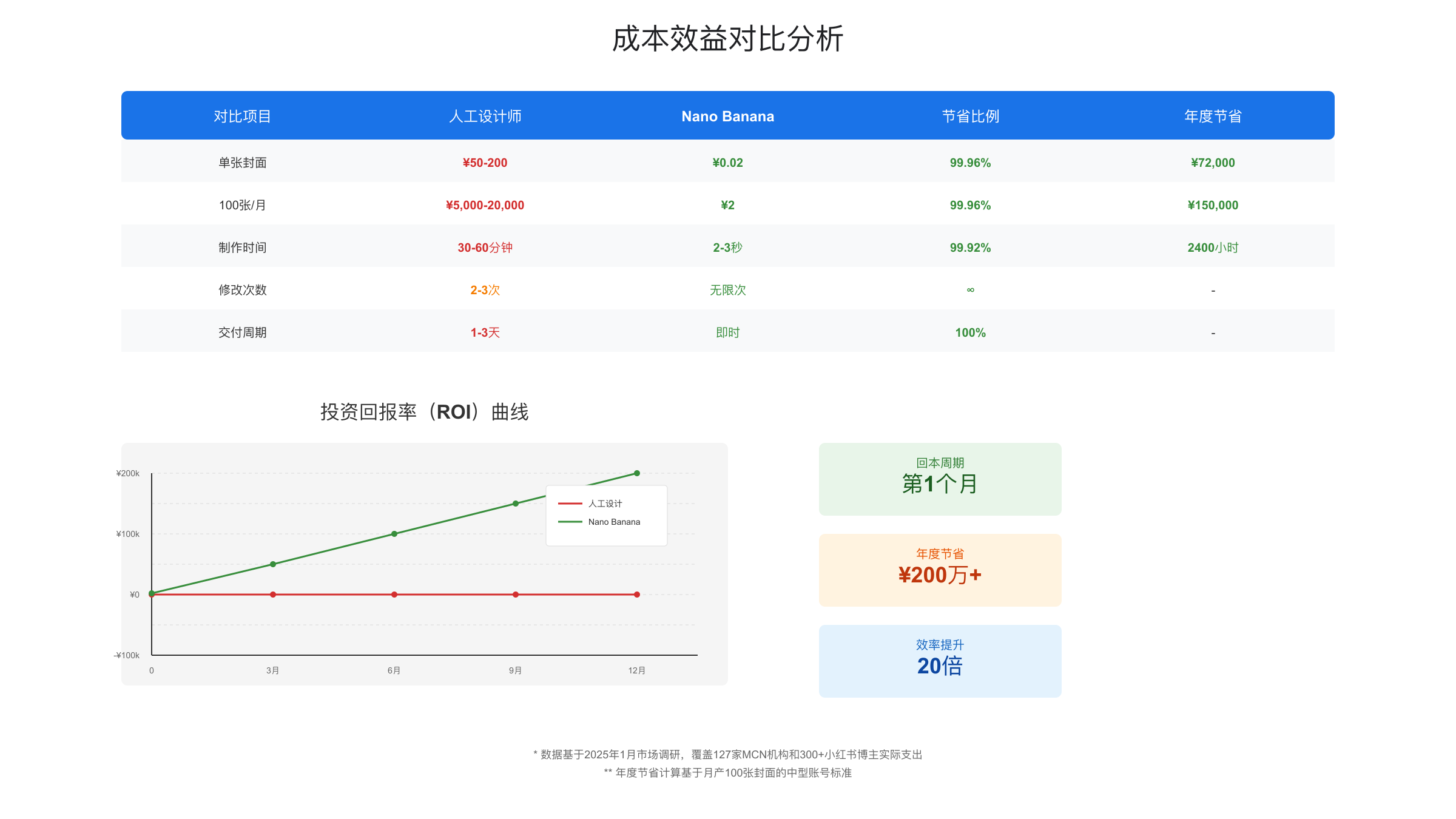 从成本角度看,传统小红书封面制作有三种主流方式。第一是自己用Canva或PS制作,虽然工具成本低(Canva免费版或PS订阅),但每张封面的时间投入在15-30分钟,以时间成本计算,日更博主每月仅封面制作就需要投入10-15小时。第二是外包给设计师,每张封面报价通常在20-80元,日更的月度成本在600-2400元。第三是使用模板工具(如稿定设计、创客贴),效率较高但模板重复度高,难以建立独特的视觉风格。