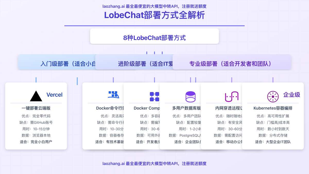 已服务 10万+ 开发者很多 LobeChat 部署文章的问题,不是命令不够多,而是先把问题问错了。对今天的大多数读者来说,真正的选择并不是“8 种方式里哪一种最酷”,而是“我现在到底该先跑一个轻量可用的实例,还是直接进入数据库版架构”。