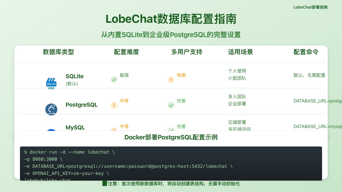 如果你今天只需要一件事,那就是先诚实回答下面这个问题:你的第一目标是“把 LobeChat 跑起来”,还是“把 LobeChat 变成可持续运营的服务”。前者适合单容器,后者通常应该直接进入数据库版。真正浪费时间的,是明明只需要前者,却把自己拖进后者;或者明明已经需要后者,却还在单容器上叠临时补丁。
