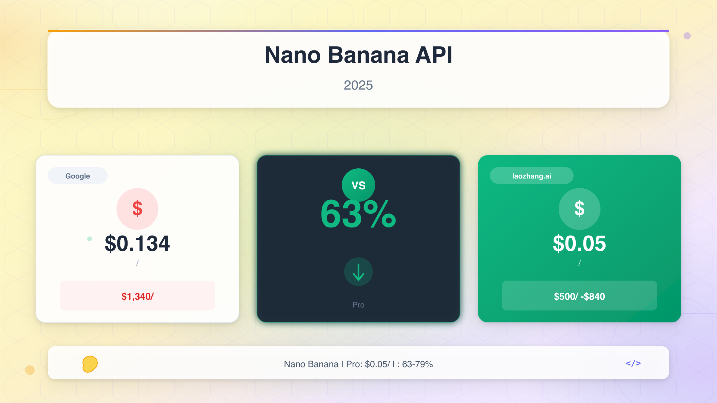 中型团队:如果你的产品对图片质量有较高要求(如需要精确的文本渲染),建议使用Nano Banana Pro版本。通过laozhang.ai以$0.05/张的价格获取,相比官方节省63-79%,同时保持高质量输出。