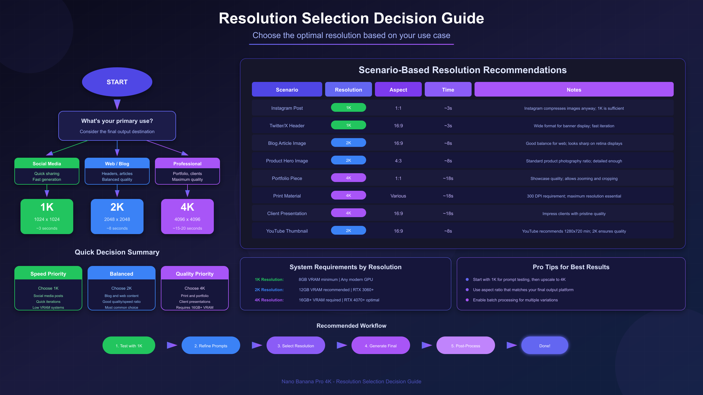 掌握了4K生成的全部技术细节后,最后一个问题是:什么时候应该使用4K,什么时候2K甚至1K就足够了?盲目追求最高分辨率不仅浪费成本,还可能因为文件过大影响应用性能。