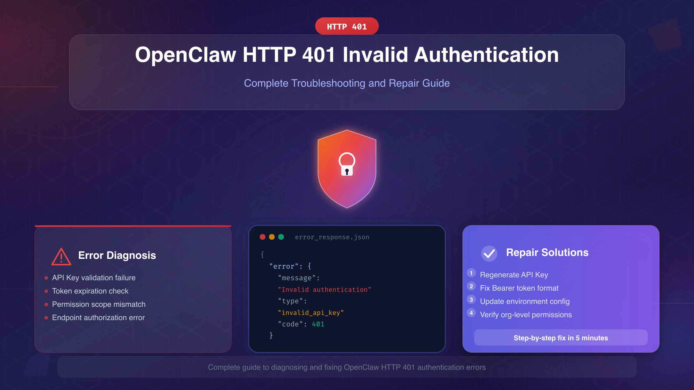 遇到OpenClaw HTTP 401 invalid authentication错误?本文深度解析6种常见原因,提供从API Key验证到OAuth令牌修复的完整排查流程,附带诊断命令和预防策略。